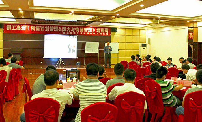 ? ? ? ?營銷計劃管控與自我管理的課程,從本次柳工高潤營銷人員轉型出發,打造顧問式銷售理念,夯實營銷團隊個人自我管理的基礎,提升團隊綜合實力。公司特別邀請到行業專家張金榮老師進行一天的專業知識培訓,分析了行業形式及行業特點,從一個一線銷售人員的角度出發,更有針對性的指出了潤滑油行業營銷特點,分享了多個客戶的營銷案例,指導營銷人員如何做好客戶的服務工作。
