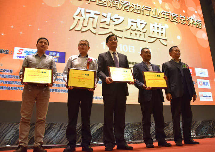 ? ? ? ??2015年11月10日,由中國潤滑油信息網、《潤滑油市場》雜志發起主辦,第十六屆中國國際潤滑油品及應用技術展覽會聯合主辦的“LubTop2015中國潤滑油行業年度總評榜”活動中,經過網絡公眾投票、專業市場調研、專家導師委員會嚴格評審流程,司能石油化工有限公司榮膺“LubTop2015中國潤滑油行業年度潤滑油OEM服務優秀供應商”稱號。司能石油化工有限公司營銷副總潘健康先生作為獲獎企業代表,應邀出席頒獎典禮并上臺領獎。