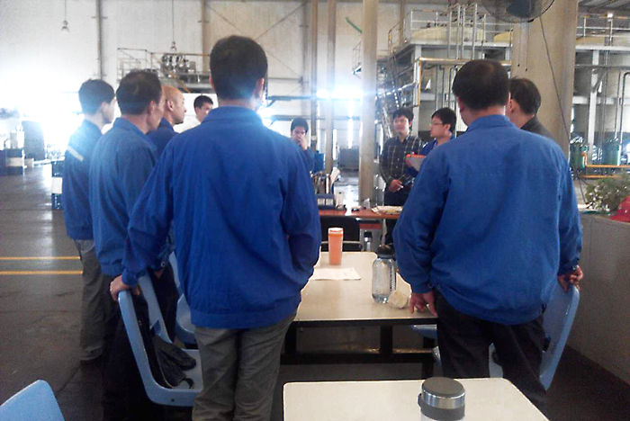 ? ? ? ? 4月19日,調合車間主任在調合車間召開一項會議,會議是關于導熱油爐系統安全運行項目的完善,車間領導及部門員工參加了會議。