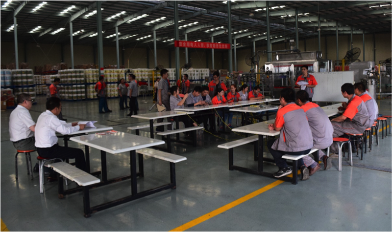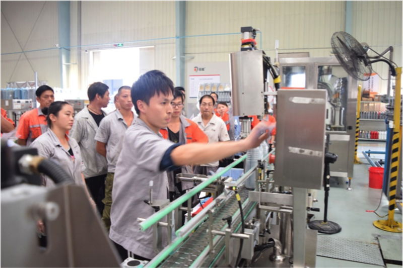 本次質量月競賽活動由知識競賽和技能競賽兩部分組成。知識競賽以知識搶答的形式展開,有小包裝4組、中控室1組、200L 1組、調油班1組、設備和內勤1組,共8個參賽小組24名員工參加競賽。技能競賽又分為封箱機調試速度比拼、旋蓋機調試速度比拼、油墨噴碼機調試速度比拼、200L空桶滾桶速度比拼、濾袋更換速度比拼、俯臥撐、扳手腕7項比賽內容,共有20余名員工參加比賽。