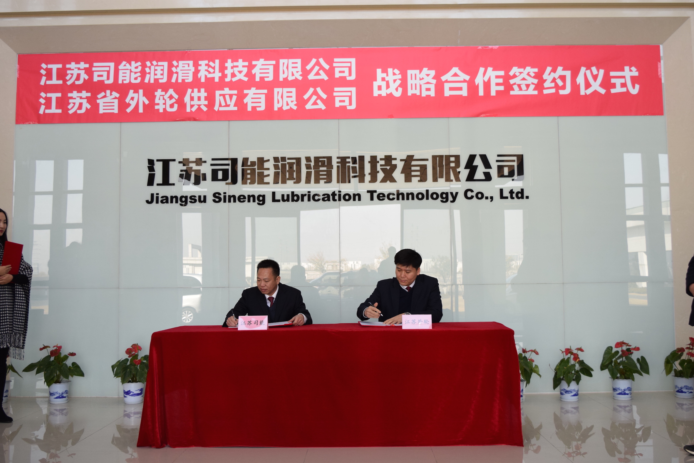 2021年1月12日上午,江蘇司能潤滑科技有限公司與江蘇省外輪供應(yīng)有限公司正式簽訂戰(zhàn)略合作協(xié)議,雙方將共同推動(dòng)潤滑油在港口機(jī)械和船舶領(lǐng)域的全面發(fā)展。司能石油化工有限公司常務(wù)副總、江蘇司能潤滑科技有限公司總經(jīng)理吳土金,司能石油化工有限公司副總經(jīng)理、總工程師吳憲,江蘇省外輪供應(yīng)有限公司董事長、總經(jīng)理孫繼強(qiáng),副總經(jīng)理沈永保等領(lǐng)導(dǎo)嘉賓出席了簽約儀式。